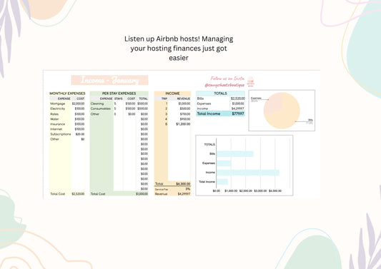 Holiday Host Income and Expenses Tracker Spreadsheet - Google Sheets Instant Download