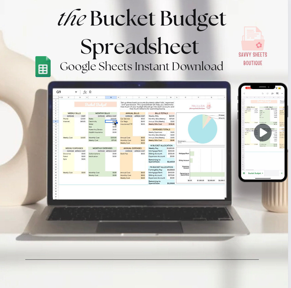 Savvy Sheets - Bucket Budget Spreadsheet - Google Sheets Instant Download