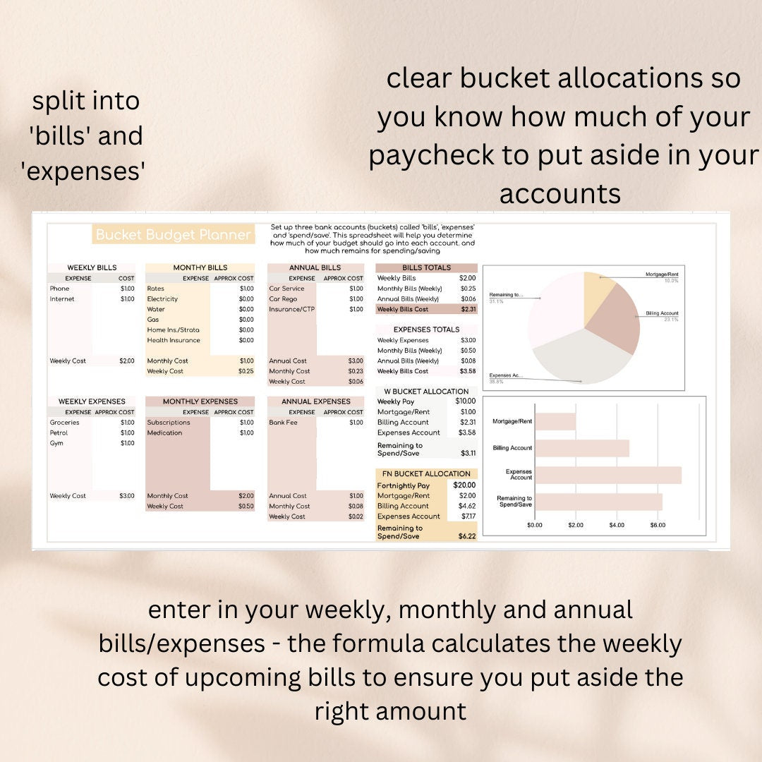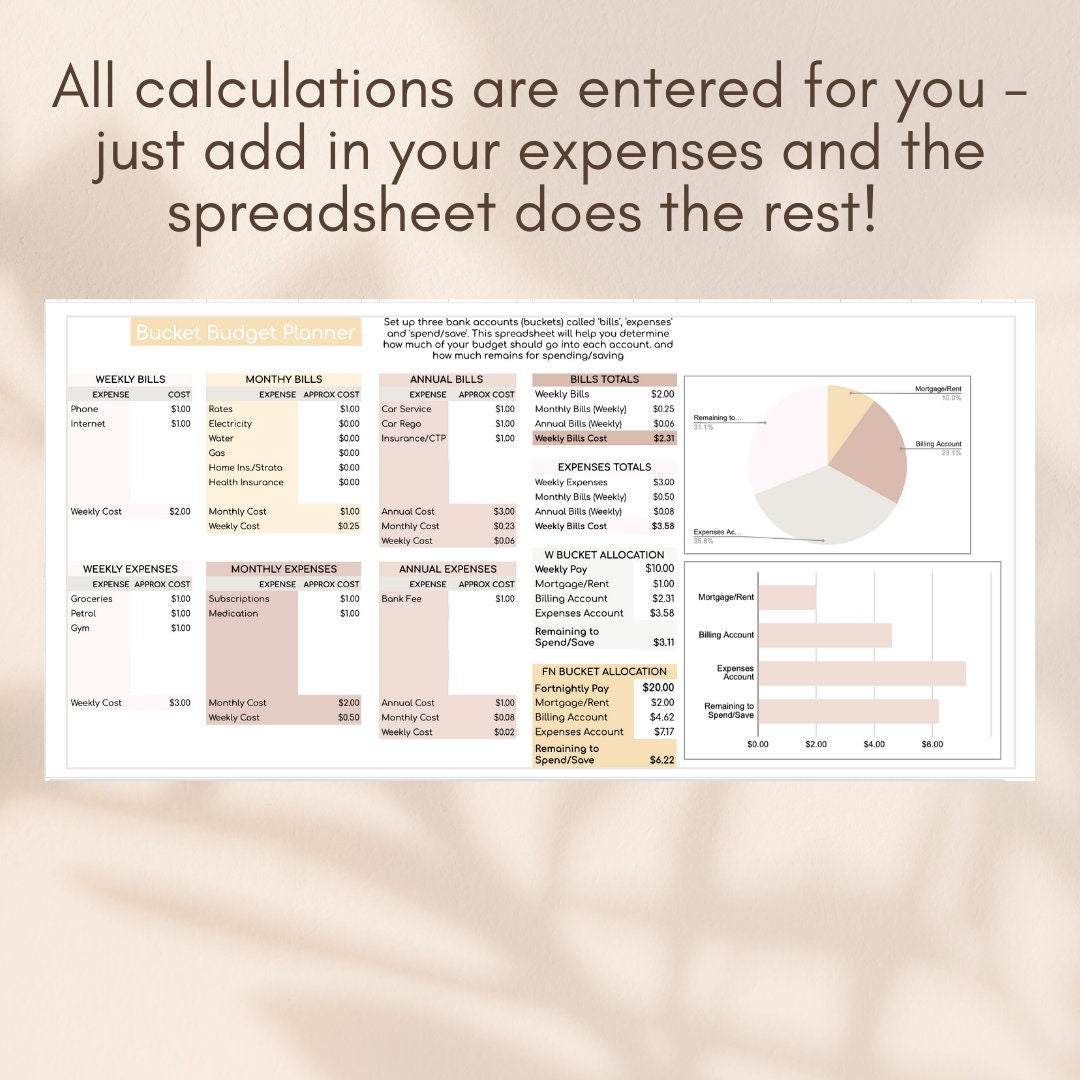 π Simple Customisation: With our template, you can easily input your weekly, monthly (28 day month), and annual bills and expenses. The cleverly set-up formulas automatically calculate the ideal amounts to allocate to each bucket/account, tailored to your unique financial situation. Budgeting has never been this fun!