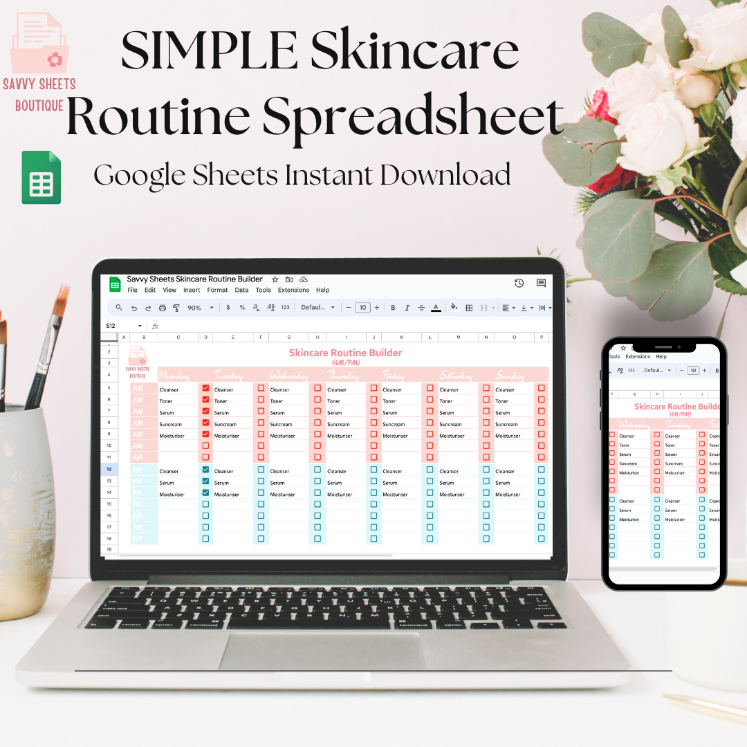 Savvy Sheets - Simple Skincare Routine Spreadsheet AM PM - Google Sheets Instant Download